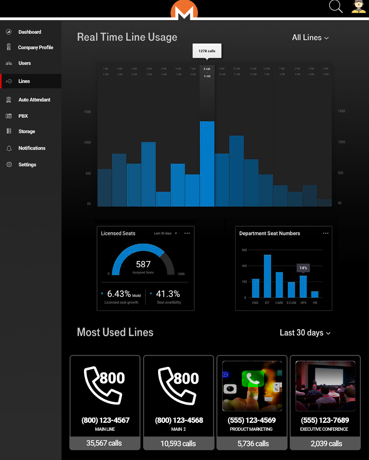 I made this one to represent the real time mob line usage . Through the web admin portal it will be shared to business users